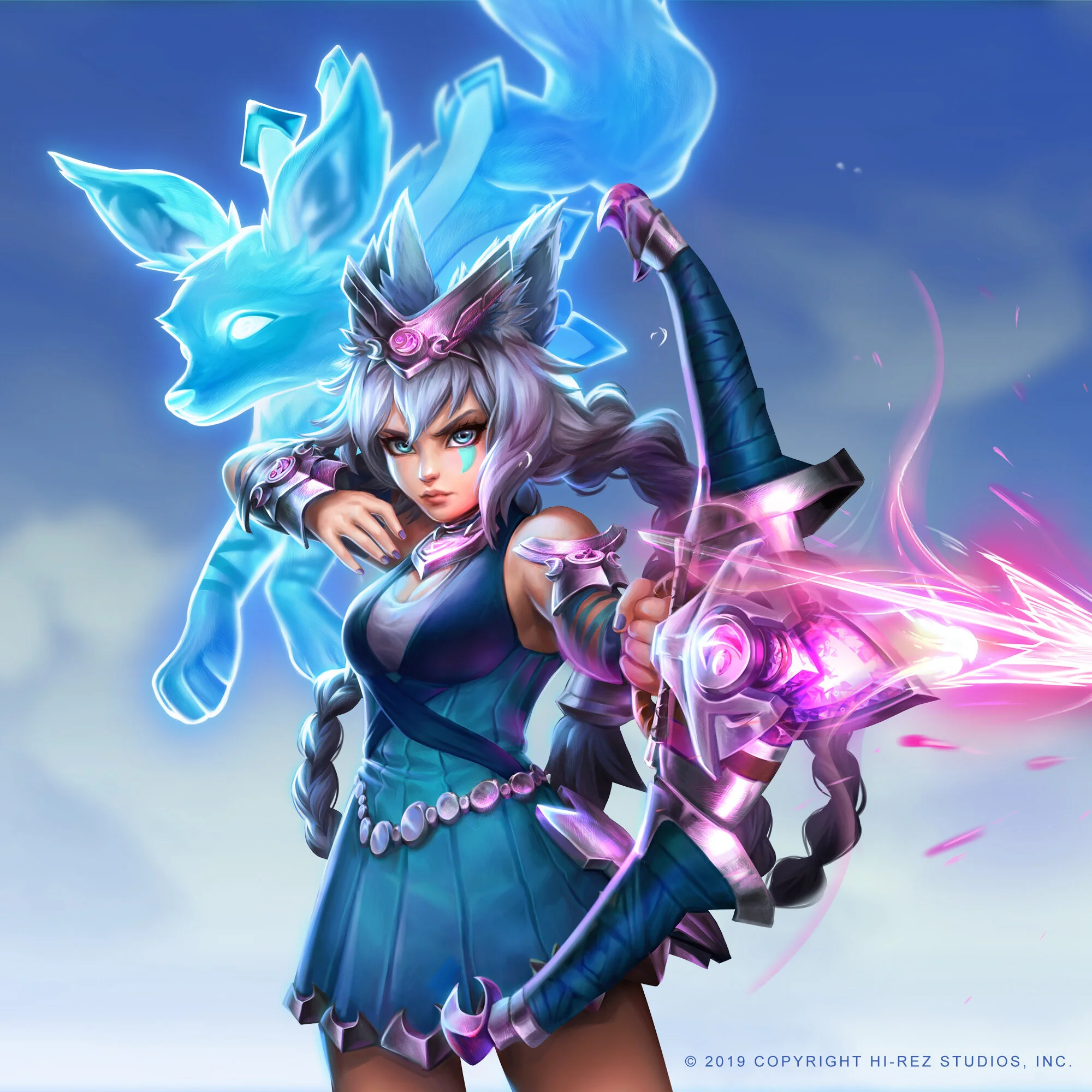 Client: Hi-Rez StudiosKey art we did for Hi-rez Expo. Here are three characters from their games: chicken from Realm Royale, Zeus from Smite and Io from Paladins.